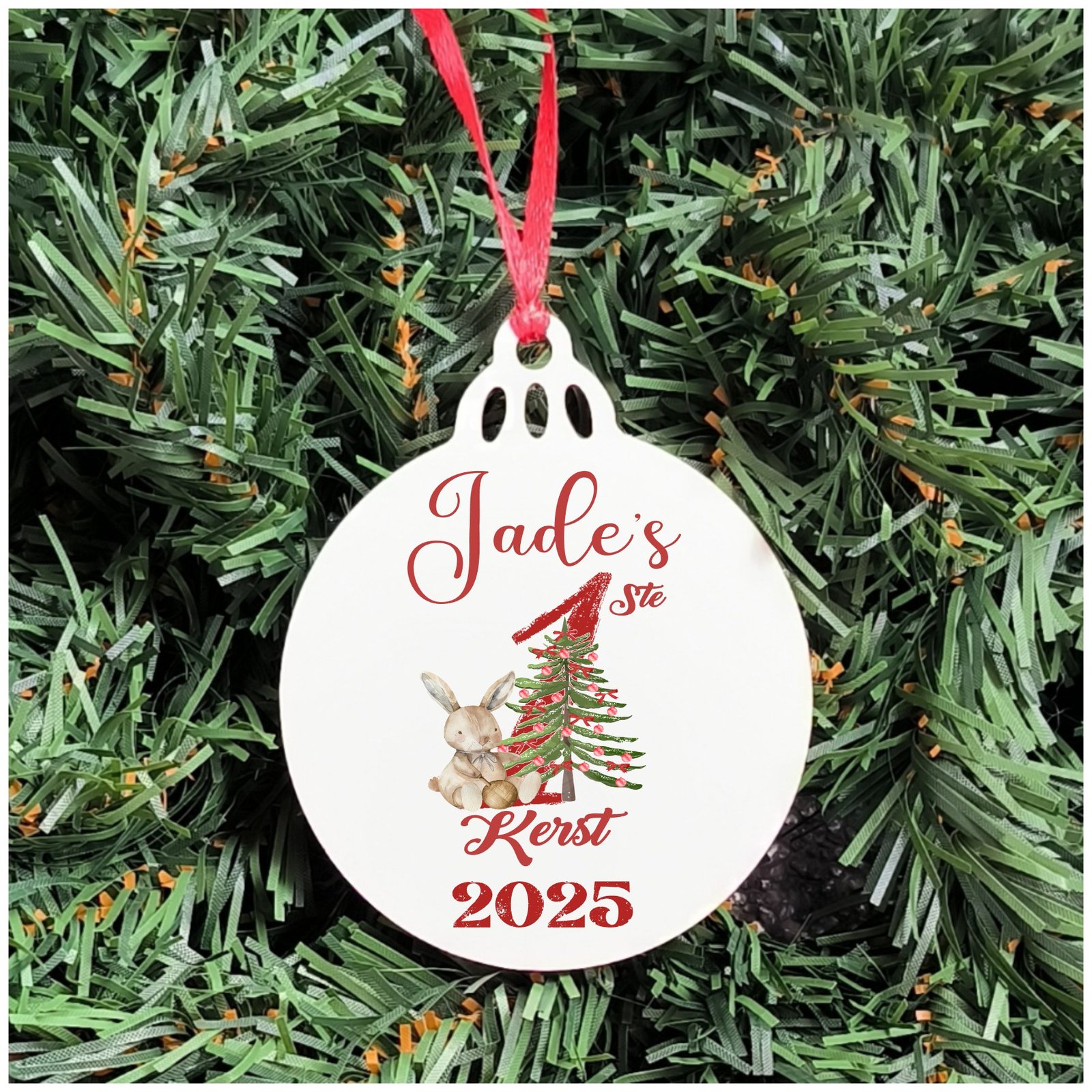 Maak deze kerst extra bijzonder met een gepersonaliseerde houten kerstbal van Atelierelsie!